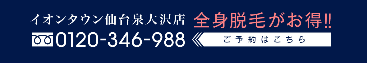 ベル ルミエール イオンタウン仙台泉大沢店の高速脱毛の予約 全身たったの60分で1か月でスベスベに。最新脱毛機で高速脱毛ベルルミエール 予約が取りやすいベルルミエールの高速脱毛